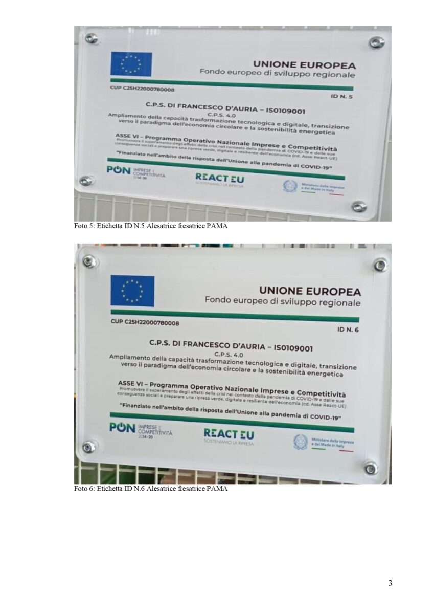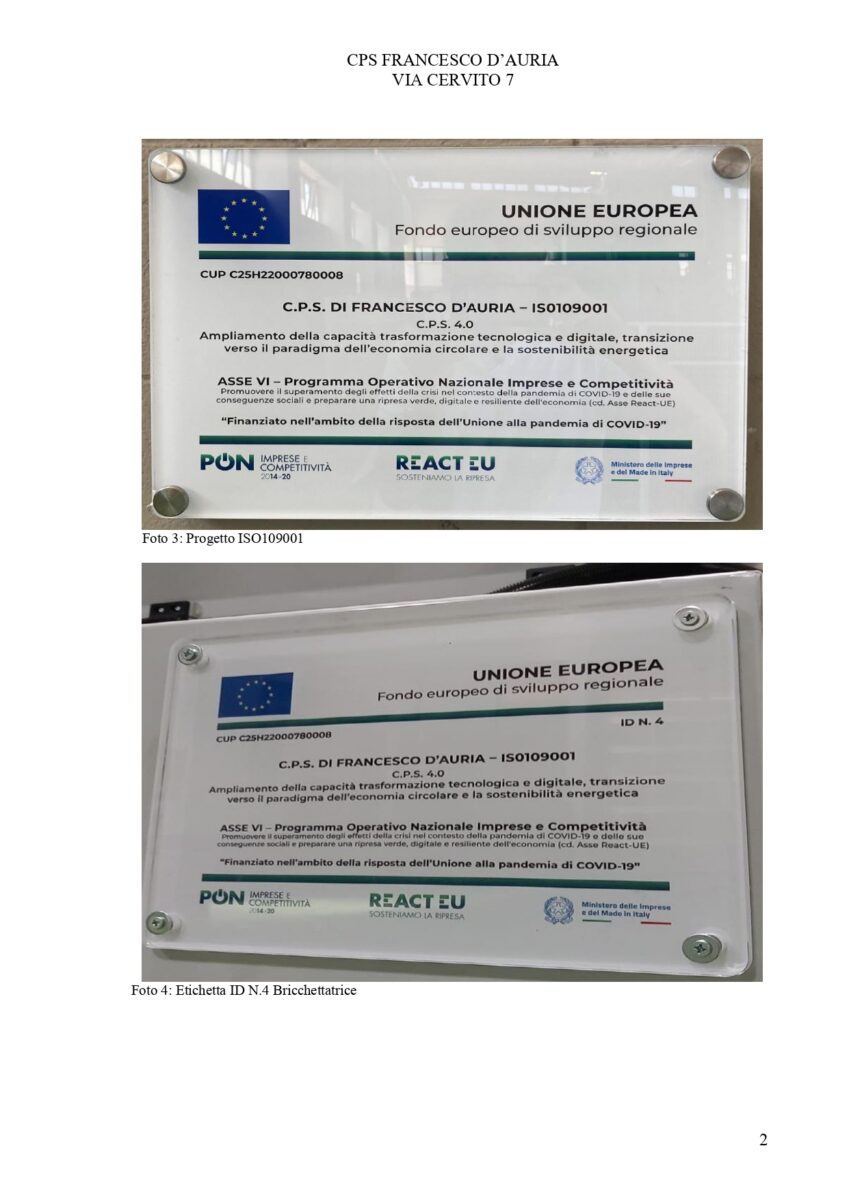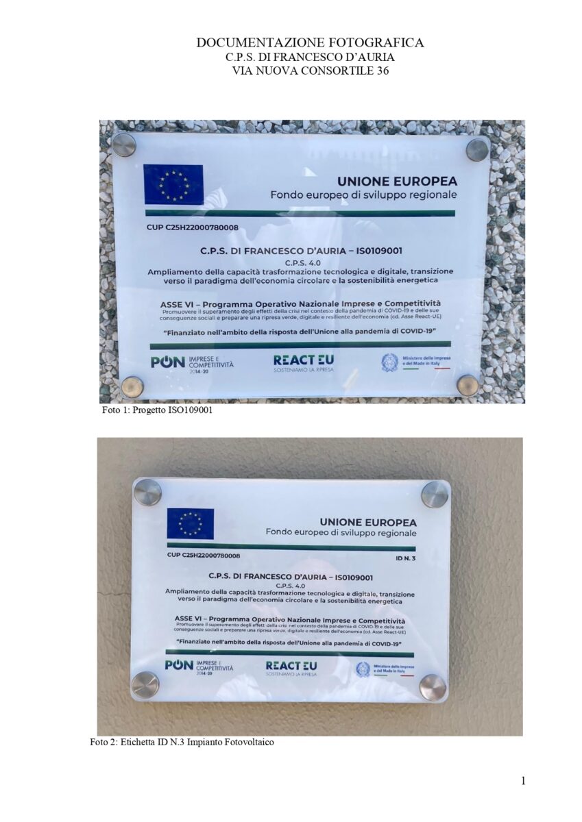 L’impresa ha realizzato presso il proprio stabilimento un progetto la cui spesa è stata rendicontata ai fini dell’utilizzo delle risorse del Programma Operativo Nazionale Imprese e Competitività 2014 – 2020 – ASSE VI – Promuovere il superamento degli effetti della crisi nel contesto della pandemia di COVID-19 e delle sue conseguenze sociali e preparare una ripresa verde, digitale e resiliente dell’economia (cd. Asse React-UE) a valere sul DM 10 febbraio 2022.